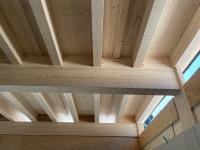 - Sichtbare Holzkonstruktion, ergänzt durch Akustikpaneele