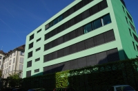 Gesamterneuerung der Gebäudehülle. Abbruch der bestehenden Natursteinfassade, Schadstoffsanierung, neue Gebäudehülle mit speziellem Systemaufbau und Stufenverglasungsfenstern.