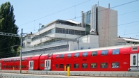 Bahnbetrieb der SZU auf Nachbargrundstück. Die Bauarbeiten wurden unter Betrieb des Zeughauses ausgeführt.