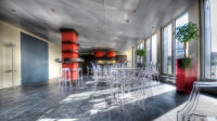 Innenerneuerung (neue Oberflächen in den Büros, Sitzungsräume und Gängen, neue WC’s, Teeküchen), Fassadenerneuerung und Dachaufstockung.