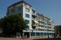 Ablösen bzw. abschälen des geschlossenen Deckputzes. Neuaufbau des Putzes mit diffussionsoffenen Materialien mit Farbgebung in Anlehnung an den Originalzustand von 1932, Umsetzung in enger Zusammenarbeit mit der Denkmalpflege.