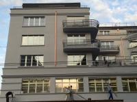 Die Liegenschaft besteht aus 3 kompakt zusammengebauten Hausteilen mit 5 Geschossen und einem zusätzlichen Attikageschoss. Die Zeile wurde als bauliche Einheit in der charakteristischen Bauweise der 1930er Jahre erstellt. (Architekt Fritz Fischer)